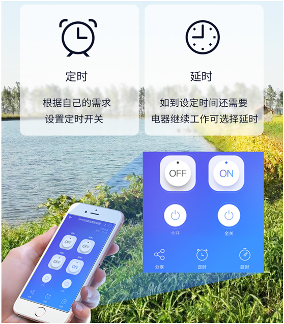 定時/延時兩種時間模式控制,肯有定控制功能,每一路精準控制設備狀態,通過手機APP添加。