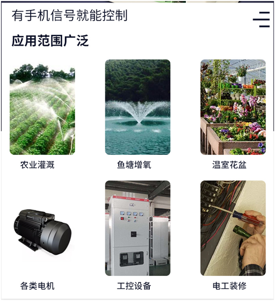 GPRS無線遙控器開關應用范圍廣泛(應用領域:農業灌溉、魚塘增氧、溫室花盆、各類電機、工控設備、電工裝修等)