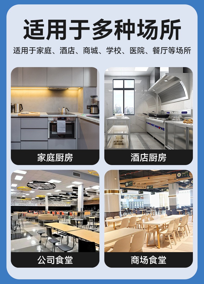 適用場景:適用于家庭廚房、酒店廚房、食堂、商場等場所