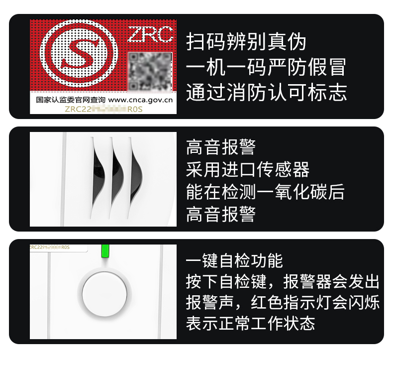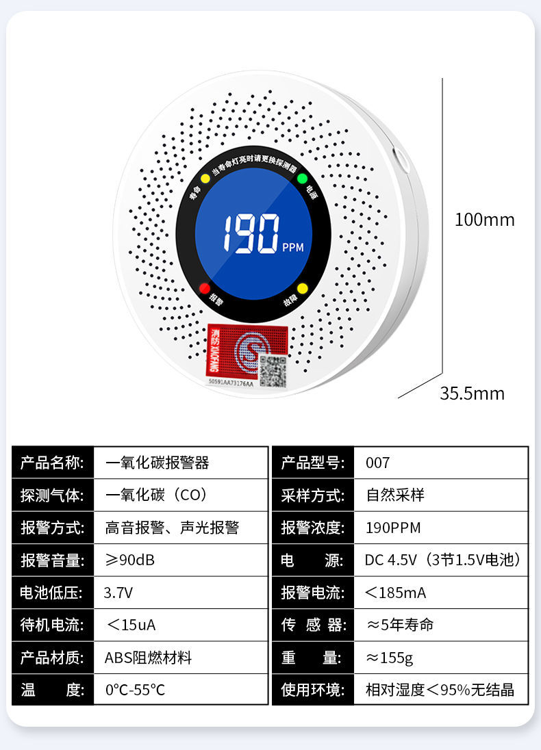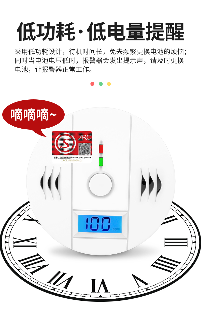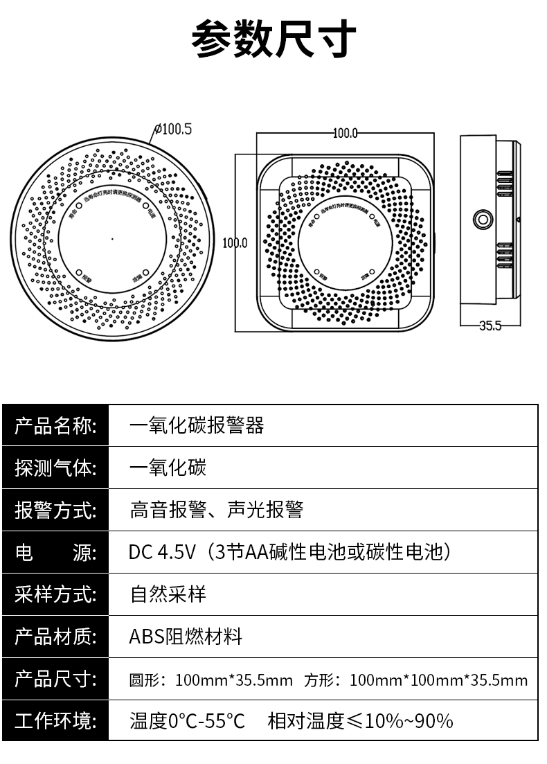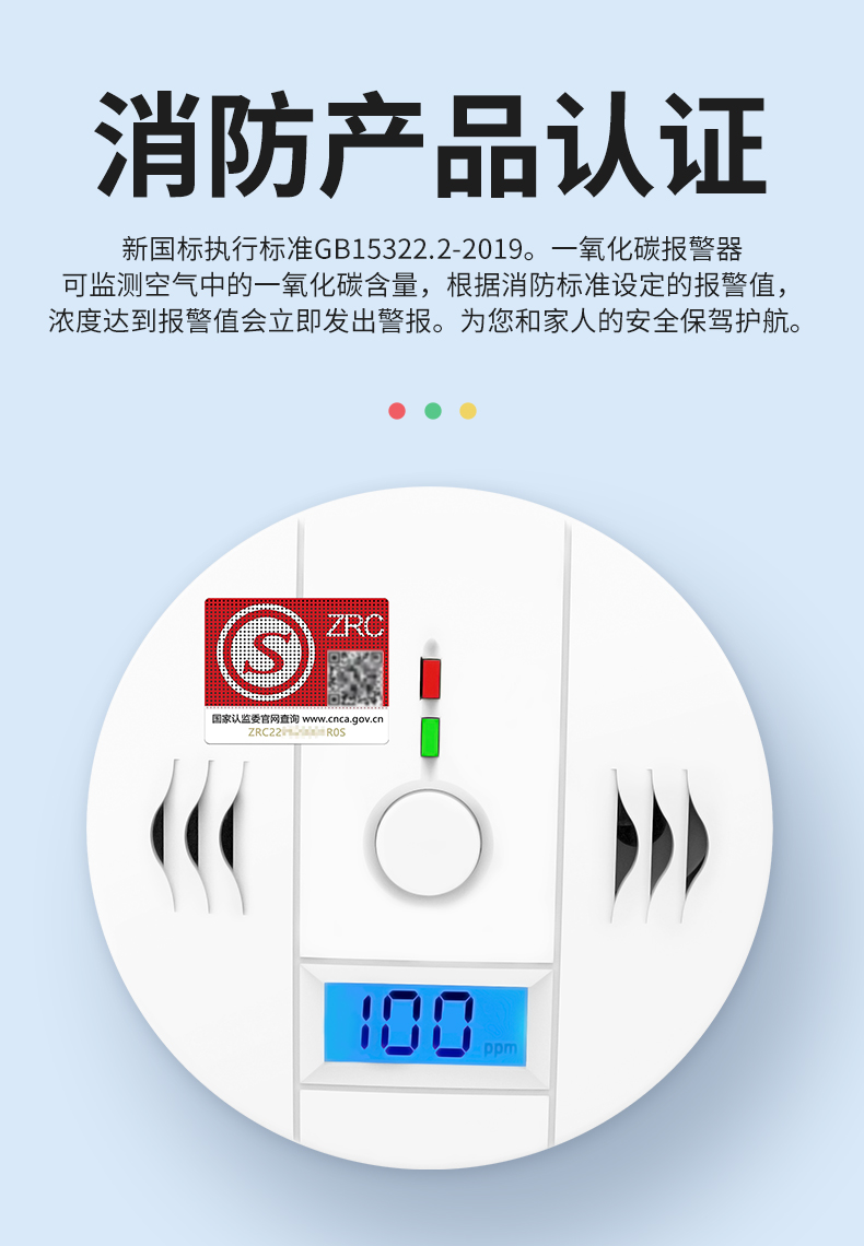 一氧化碳報警器(型號PA-009) 產(chǎn)品規(guī)格 功能特點(diǎn) 資料下載 一氧化碳報警器(型號PA-009)1.檢測氣體、燒煤、燒柴、燒炭、蜂窩媒、露營封閉環(huán)境、封閉車內(nèi)2.85分貝報警音量3..LED液晶屏幕顯示4.故障自檢: 綠燈(正常)、黃燈 (故障、需要檢修) 紅燈(氣體濃度超標(biāo))5.報警方式:蜂鳴聲提示 6. 產(chǎn)品保險:1000萬承險7. ABS阻燃材質(zhì)適用場景:適用于廚房、浴室、起居室、火鍋包廂、飯?zhí)玫乳L時間空氣不流通的場所安裝一氧化碳報警探測器