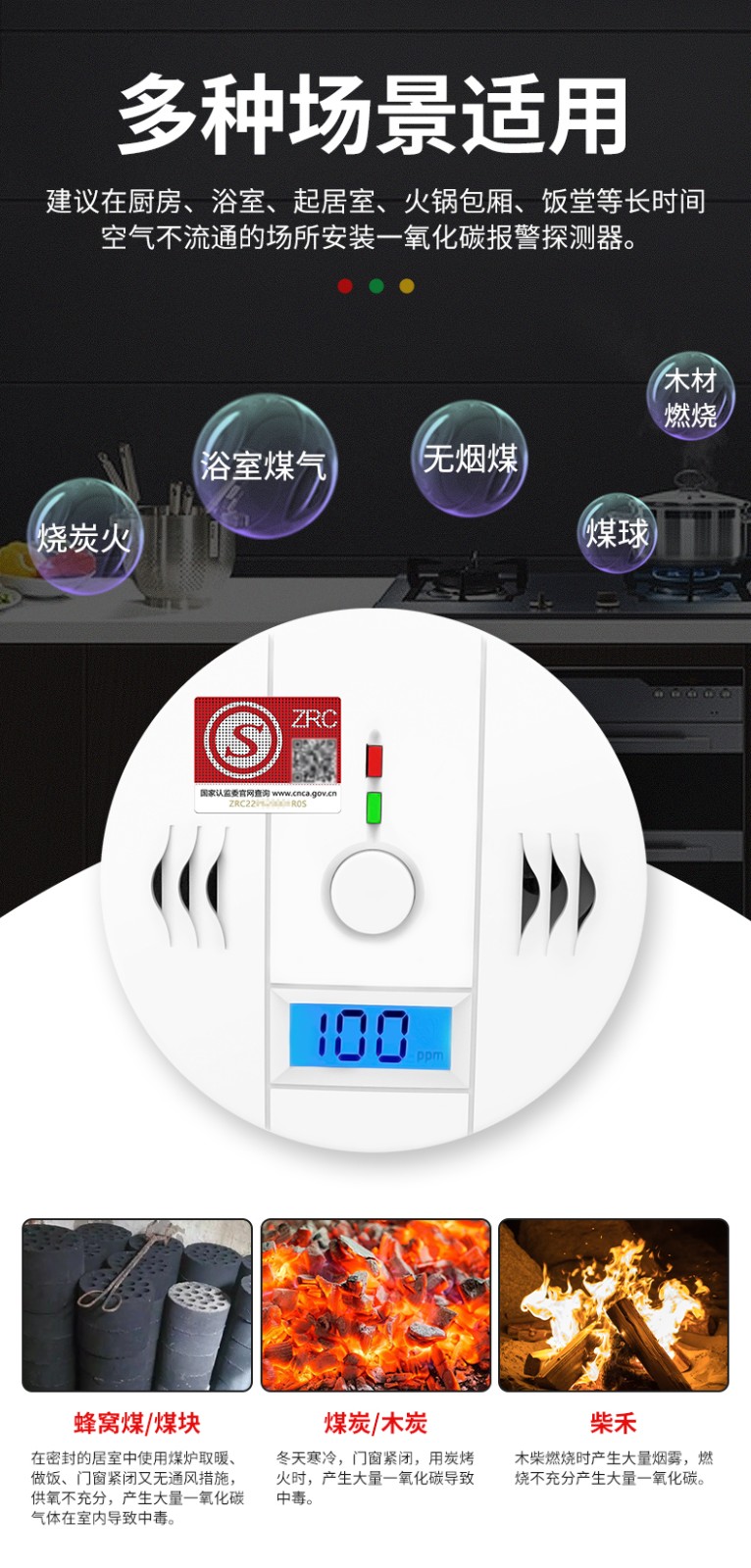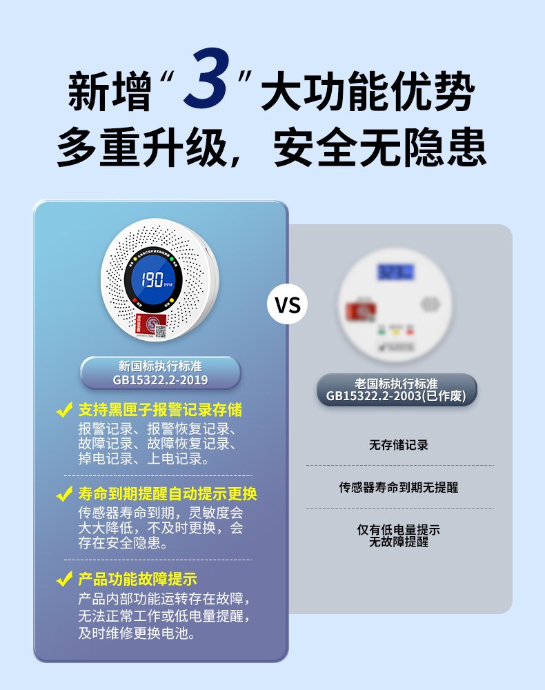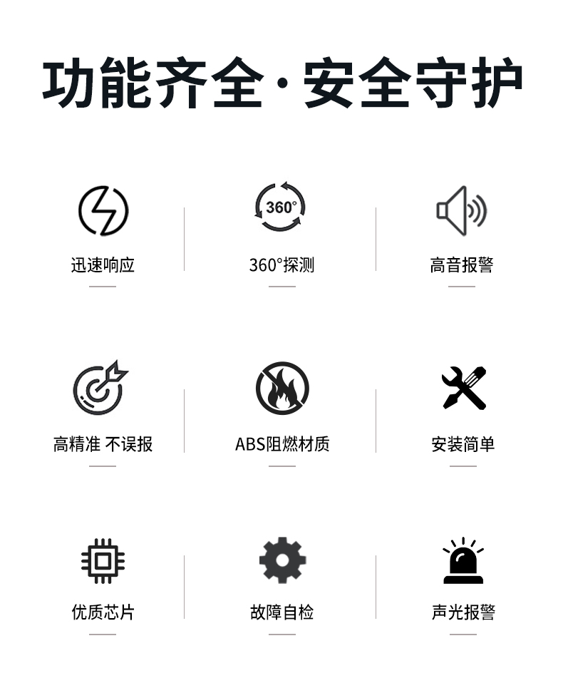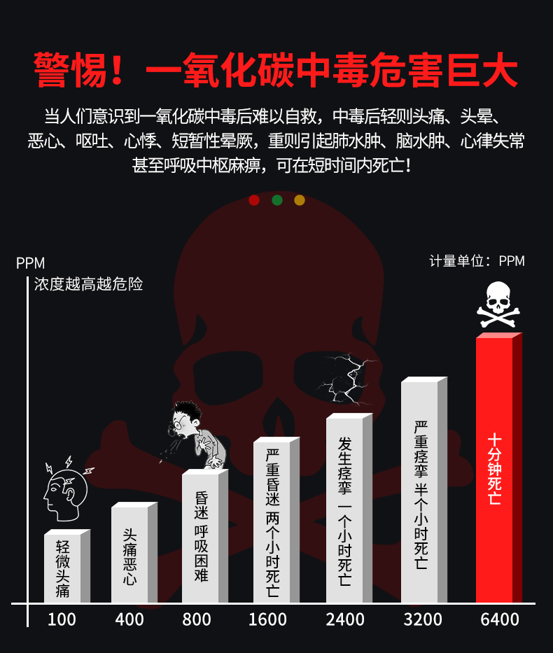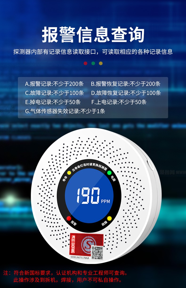 一氧化碳報警器(型號PA-009) 產(chǎn)品規(guī)格 功能特點(diǎn) 資料下載 一氧化碳報警器(型號PA-009)1.檢測氣體、燒煤、燒柴、燒炭、蜂窩媒、露營封閉環(huán)境、封閉車內(nèi)2.85分貝報警音量3..LED液晶屏幕顯示4.故障自檢: 綠燈(正常)、黃燈 (故障、需要檢修) 紅燈(氣體濃度超標(biāo))5.報警方式:蜂鳴聲提示 6. 產(chǎn)品保險:1000萬承險7. ABS阻燃材質(zhì)適用場景:適用于廚房、浴室、起居室、火鍋包廂、飯?zhí)玫乳L時間空氣不流通的場所安裝一氧化碳報警探測器