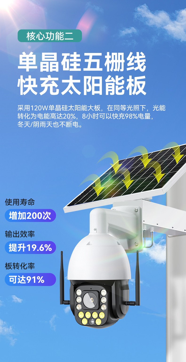 3.電源:光電兩用,太陽能+內置鋰電池供電