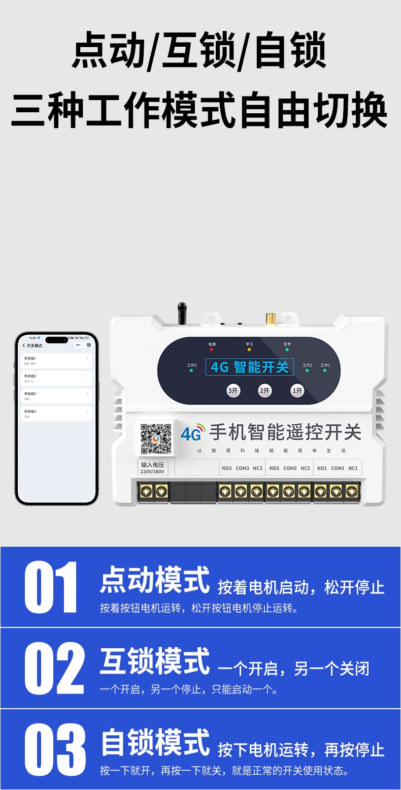 三種模式切換:點(diǎn)動(dòng)/自鎖/互鎖