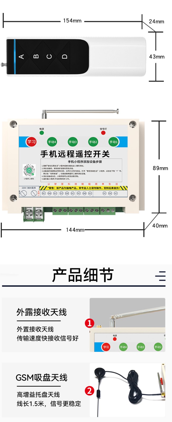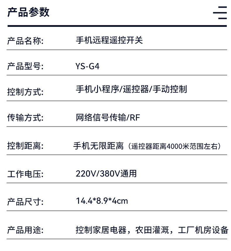 2.有手機信號就能控制  、手機無線距離(遙控器空曠距離4000米)